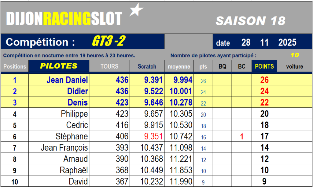 Les Mosler furent particulièrement en forme puisque qu’on en compte deux sur le podium. Bravo Lapin pour cette belle troisième place. 7 millièmes d’écart à la moyenne entre le premier et le second, et 27 millièmes entre le troisième et le quatrième. C’est chaud au DRS !